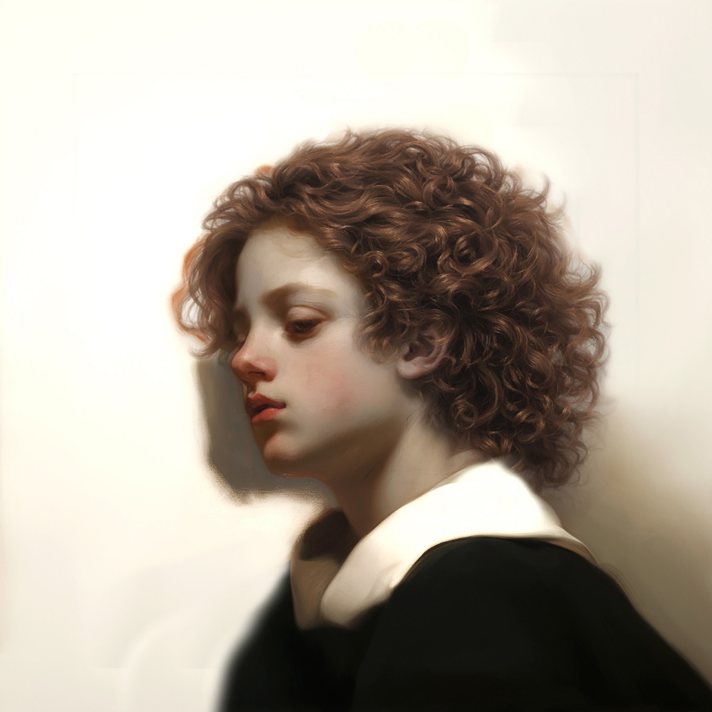 I am picturing Icarus as a choir boy, isolated against a bright background as though pulled from a lineup. Ringlets, voice still high, dressed to fit in with the chorus. The gaze is downward, uncertain, mercurial.