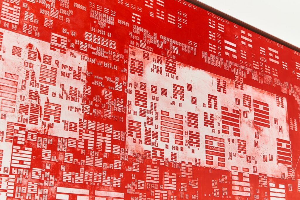 Robert Alice made history in 2020 when he sold the first NFT at a major auction house at Christie’s New York. Alice spent months hand-painting 12.3 million digits of Bitcoin’s original code across 40 paintings, each canvas a hybrid object: physical art connected to an NFT. His collection “SEAL” at the fair is physical canvases hand-painted with traditional Chinese seals — an ancient method of ownership and authentication. There was also a participatory component where fair attendees could add their own seals to a digital scroll.